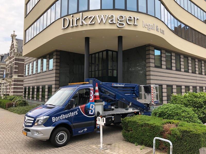 Wij vinden het belangrijk om het gehele traject in eigen hand te houden. Daarom beschikken wij over diverse mobiele kranen en hoogwerkers. Wij kennen dus geen beperkingen met betrekking tot de locatie en/of hoogte van uw gevelreclame. Onze accountmanagers brengen van te voren alles zorgvuldig in kaart. Op deze manier komen wij dus altijd met het juiste materieel op uw locatie.